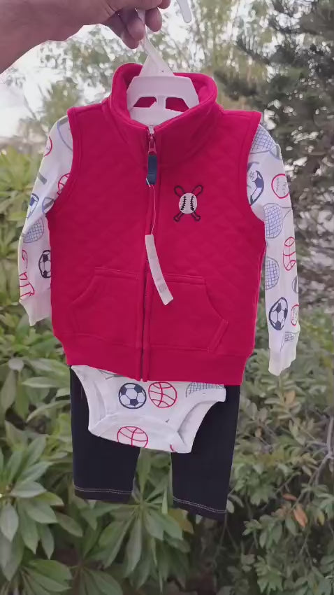 Designed with a zip-front design, this cute quilted vest pairs with a long-sleeve bodysuit and a pair of coordinating pants.